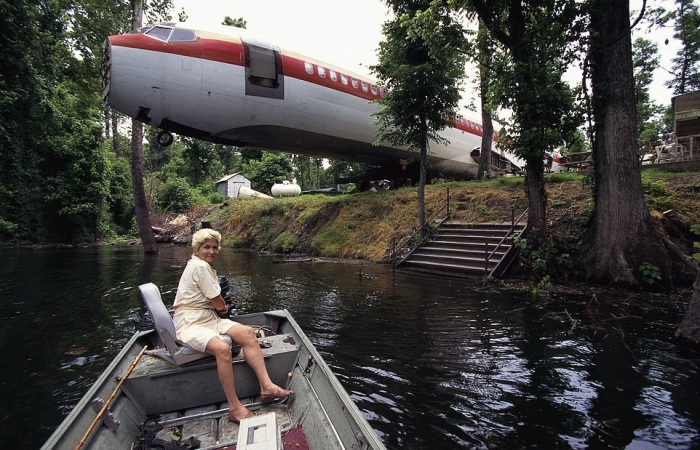 Уже много лет на берегу озера неподалеку городка Benoit, что в штате Висконсин, стоит на приколе авиалайнер Boeing 727. Здесь он оказался не из-за катастрофы, а потому, что изобретательный косметолог Джо Энн Уссери (Jo Ann Ussery), оставшаяся без дома после очередного урагана, решила столь экстравагантным способом восполнить потерю.