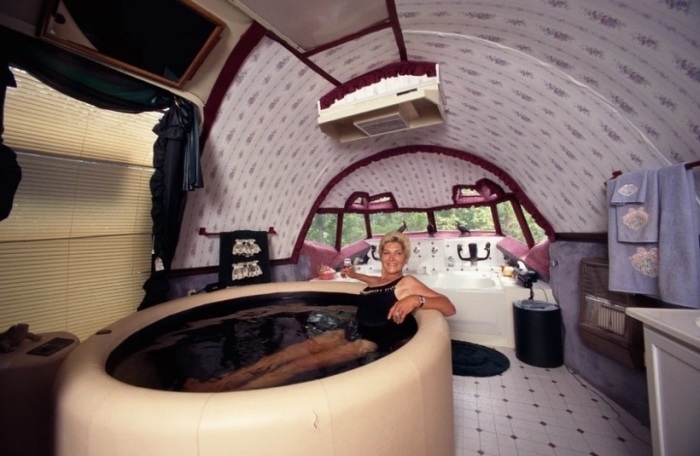 Джо Энн расслабляется в горячей ванне внутри своего Боинга 727 (дом-самолет «Little Trump»). | Фото: travelask.ru.