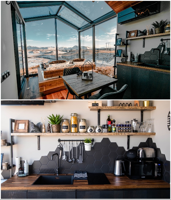 К услугам постояльцев полноценная кухня, в которой есть еще и крупы, макароны, кофе, чай и сахар. | Фото: mymodernmet.com.