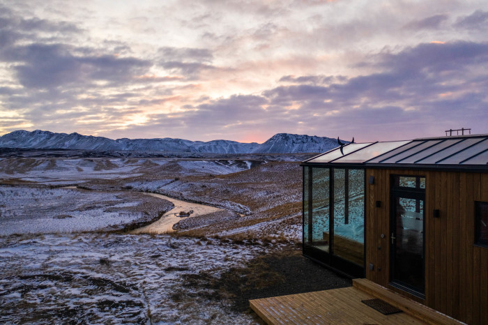 Эко-отель «??D Исландия», славящийся необычной организацией отдыха среди девственной природы, недавно установил еще два оригинальных номера. Наполовину прозрачные домики расположили вдали от цивилизации.