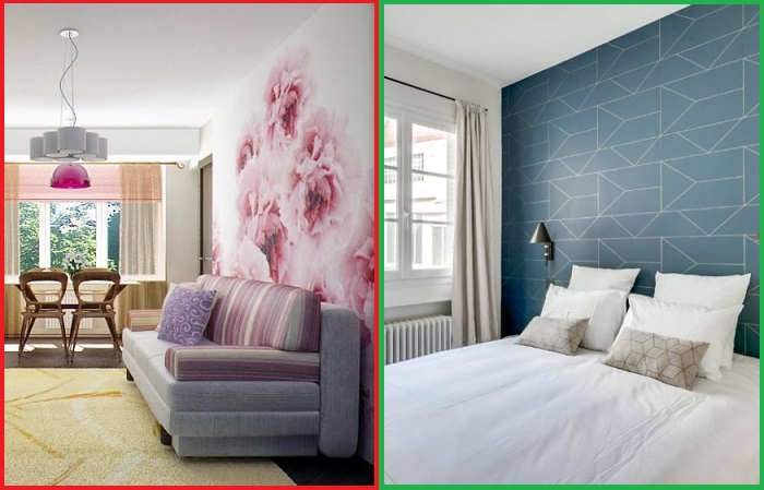 Парадокс: на снимках, размещенных на страницах у дизайнеров или сайтах, посвященных оформлению интерьера, фотообои выглядят красиво. Однако в реальной жизни они производят впечатление чего-то искусственного, ненастоящего, как, например, неживые цветы. Кроме того, фотообои достаточно сложно вписать в имеющийся интерьер, они редко смотрятся гармонично, даже если выбор пал на звездное небо, панораму Нью-Йорка или морское побережье. Гораздо лучше оформить акцентную стену при помощи декоративной штукатурки, керамической плитки, деревянных панелей. Еще один вариант – покрасить ее в контрастный цвет, например, изумрудный, и дополнить интерьер деталями такого же оттенка, чтобы на выходе получилась целостная картинка.