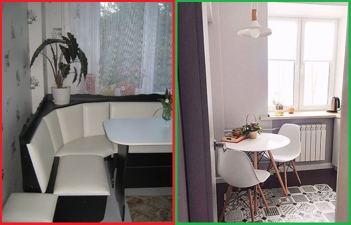 Громоздкий мягкий уголок следует заменить круглым столом и невысокими стульями