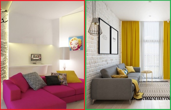 Во всем должна быть мера. Если вы хотите сделать свою квартиру аркой, то используйте красный, голубой, желтый, розовый лишь в качестве акцентов, привлекающих внимание. На нейтральном фоне они будут смотреться отлично. Так, комната с серыми стенами, коралловыми шторами и постельным бельем будет выглядеть гораздо гармоничнее, чем розовое помещение с зеленым диваном под соусом из желтого ковра.