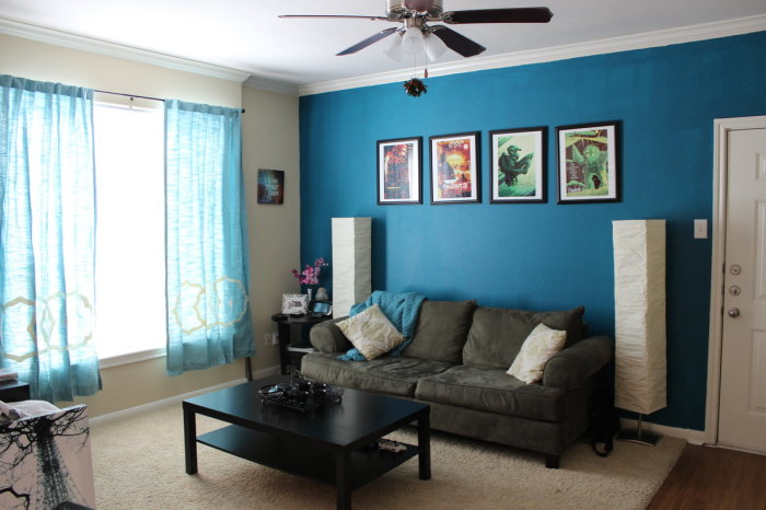 Перед тем, как выбрать цветовую гамму, учтите размер помещения. Если это, например, коридор, который редко отличается большими габаритами, то он действительно превратится в коморку. А вот для гостиной темные цвета станут отличным решением. Главное – не сильно увлекаться и не выбирать total black. Лучше использовать синий, бордовый, темно-зеленый в качестве акцентов.