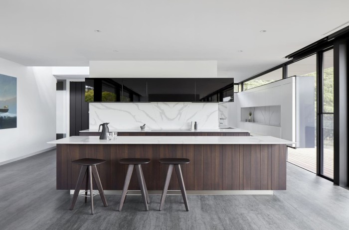 Минималистичная кухня стремится к ощущению «пустоты» и «дзена», чтобы ничто не отвлекало внимание от самого действа: ужина, приятного разговора за трапезой, игр детей, включенной телепередачи. Минимализм никогда не стремится обратить на себя внимание. Здесь акцентом становится подсветка или мелкая бытовая техника, но не сама кухня, которая часто даже имеет «невидимые» ручки на фасадах.