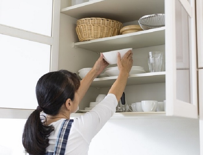 Для начала необходимо освободить все кухонные шкафы. Чтобы вам было удобнее, подготовьте три пакета или контейнера: в один из них складывайте мусор, в другой – вещи, которые получится отдать знакомым или продать, в третий – нужные кухонные принадлежности, которыми вы планируете пользоваться в дальнейшем. Помните – на кухне должна остаться только необходимая вам посуду и аксессуары. Всем остальным предметам не место в комнате, они лишь будут создавать хаос и беспорядок.