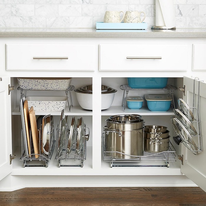• Удобство – члены семьи будут точно знать, где лежит сито, сковорода или маленькая кастрюля, а значит не станут задавать множество вопросов по этому поводу. Кроме того, так будет намного проще убираться, ведь каждая вещь приобретет свое место.