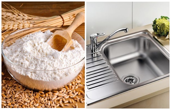 Сыпать муку в мокрую раковину нельзя, поскольку можно образовать засор / Фото: milayaya.ru