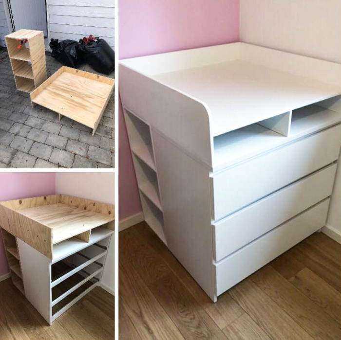 Один датчанин так сильно любил полки и тумбы от IKEA, что стал превращать их в другие, более фундаментальные вещи. Как оказалось, из простых сборных полок можно без труда создать пеленальный столик для младенца, потому что в IKEA любят соблюдать стандарты размеров, а поэтому... всё всему соответствует! Ну просто Lego!