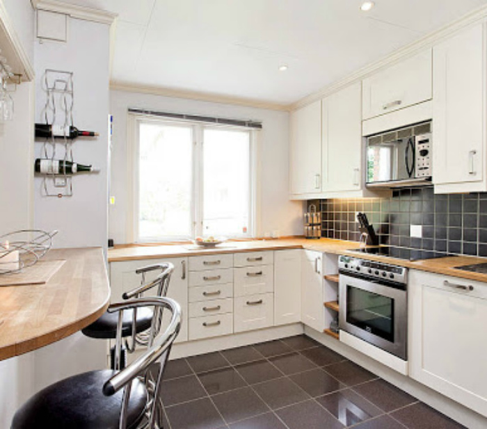 Маленькие хитрости, заимствованные у профессиональных дизайнеров. Нерациональное распределение пространства на кухне - боль многих хозяек. Куча мелочей, которые постоянно создают визуальный беспорядок. Мы же подсмотрели 9 идей и блогеров и дизайнеров, которые позволят правильно и грамотно организовать пространство. 1. Двойной стол Стол и барная стойка. | Фото: Межкомнатные двери. В квартирах открытого типа отлично сморятся двойные столы. Со стороны кухни - большая рабочая поверхность, она же обеденный стол, а со стороны гостиной - барная стойка для гостей. Это прекрасный пример зонирования и использования территории в двух плоскостях. 2. «Хрущевский» холодильник Старый «хрущевский» холодильник. | Фото: Интерьер квартиры, InMyRoom. Немногие люди вообще имеют представление, что такое «хрущевский» холодильник, но есть и небольшой процент, кто не только слышал, а и имеет на своей кухне этот пережиток советского прошлого. Итак, сначала выясним, что же представляет собой это понятие. Холодильник хрущевский – это встроенный шкафчик под подоконником, предназначенный для хранения продуктов зимой. Такая конструкция встречается в квартирах домов постройки 1950-70-х годов. Заделывать эту нишу - бессмысленная затея, лучше постараться рационально ее использовать. Например, можно украсить мозаикой, дополнить подсветкой и оборудовать новой дверцей, а можно, наоборот, демонтировать дверку и превратить в аккуратный встроенный стеллаж с полками. 3. Отказ от верхних шкафчиков Кухня без верхних шкафчиков. | Фото: InMyRoom. Если вам кажется, что на вашей кухне настолько тесно, что нечем дышать, попробуйте освободить стены. Для этого придется перебрать свои вещи и отказаться от гарнитура с верхними шкафчиками. Если вам все же не хватает систем хранения, подберите для своей кухни лаконичный книжный стеллаж. Такой предмет мебели заменит собой буфет и при этом займет намного меньше места. 4. Фартук из камня Каменный фартук на кухне. | Фото: Vashakuhnya.com. Каменные фактуры выглядят очень изысканно и стильно, однако, многие опасаются использовать их на кухне. Дело в том, что камень, сам по себе пористый, а значит, производить уборку будет затруднительно. Тем не менее, дизайнеры нашли выход - лаковое покрытие. Такой прием позволит обзавестись стильным фартуком и не переживать о том, что он запачкается. 5. Оригинальные системы хранения Разнообразные и необычные системы хранения. | Фото: Chert-poberi.ru, pinterest.ch. Оптимизировать небольшую кухню помогут функциональные решения для хранения. Дизайнеры призывают не бояться использовать и комбинировать системы разного типа. С их помощью можно не только навести порядок, но и украсить пространство кухни. Например, одну из свободных стен можно задействовать под открытый стеллаж с металлическими полками и крючками. Что касается рабочей поверхности, можно установить там пару полок из металла и дерева для того, чтобы задействовать вертикальное пространство. 6. До самого потолка Пространство под потолком. | Фото: Mebel.ru. Кухонные гарнитуры старого образца часто не доходили до потолка. В итоге владельцы таких кухонь имели около 30 см бесполезного пространства под потолком и большую площадь для сбора пыли. Современные гарнитуры более рациональны. Почти все они заканчиваются под самым потолком. Да, согласны, хранить вещи так высоко не слишком удобн