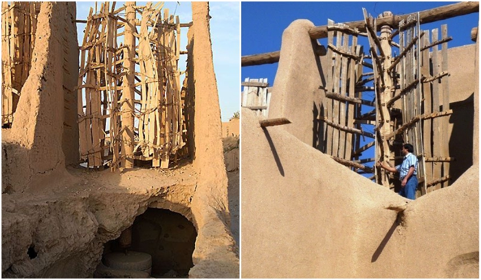 Принцип работы ветряных мельниц Ирана, примитивные механизмы которых работают уже полтора тысячелетия (Nashtifan). | Фото: pinterest.com.