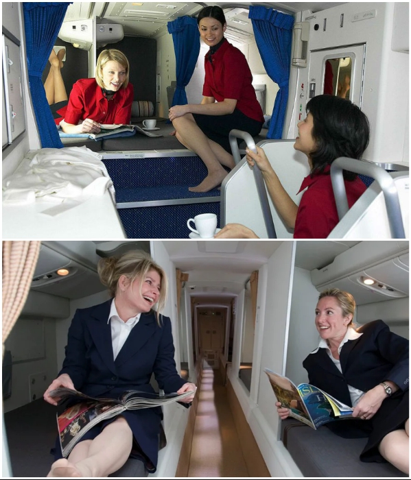 Трансатлантические беспосадочные перелеты длятся настолько долго, что диву даешься, как стюардессам удается быть всегда на ногах и оставаться такими же приветливыми и «свежими» как вначале путешествия. Но секрет оказался довольно прост, в авиалайнерах дальнего следования есть скрытые спальни, в которых члены экипажа могут выспаться и привести себя в порядок.