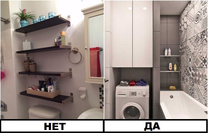 Что делать? Лучше всего предусмотреть и закрытые шкафчики, и открытые полки. Положите все вещи, которые должны быть всегда под рукой на полку, например, зубную щетку, шампунь, гель для умывания, а редко используемые предметы разместите в шкафу. Очень красиво будет смотреться зеркальный шкаф и тумба с открытыми полками. А в зоне самой ванной можно предусмотреть нишу, чтобы за банными принадлежностями (мочалкой, гелем для душа) не пришлось далеко тянуться.