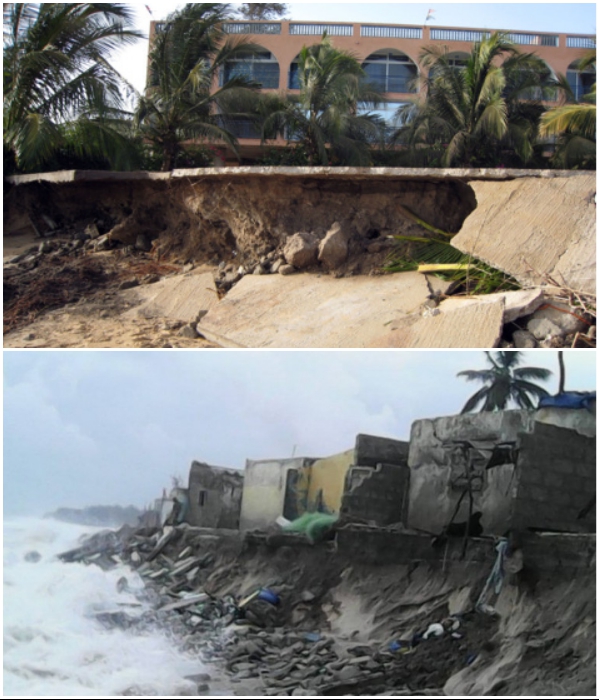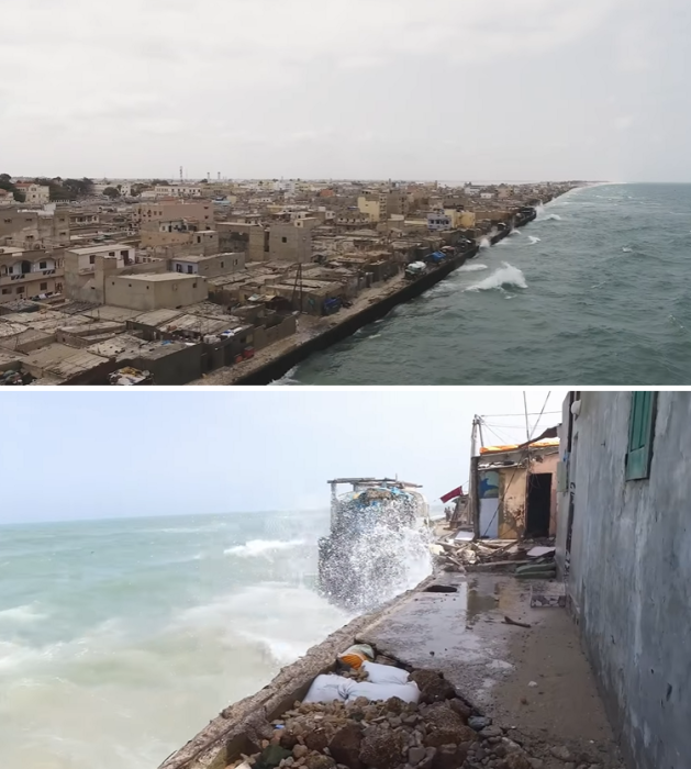 Западное побережье Африки находится не просто в бедственном положении, оно постепенно поглощается водами Атлантического океана. Особенно критическое положение в Сенегале и его старой колониальной столице Сен-Луи. За постоянные подтопления, потери целых кварталов и близлежащих деревень это место уже давно называют «Венеция Африки». И самое страшное, что природную стихию обуздать не удастся. Как прогнозируют ученые, к концу уже этого столетия 80% территории города будет потеряно навсегда.