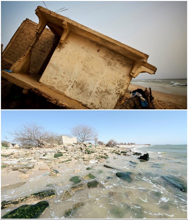 Не лучше обстоят дела и на северной части бывшей столицы. Рыбацкий поселок Doun Baba Dieye несколько лет назад оказался под водой, а его жители до сих пор скитаются, не имея ни жилья, ни работы. Некоторые рыбаки настолько тоскуют по своим домам, что приходят на берег уже океана и с сожалением наблюдают, как вода покрывает остатки самого высокого здания поселка – школы. В каждый приход они высаживают на берегу деревья и надеются, что этим смогут укрепить почву вдоль береговой линии.