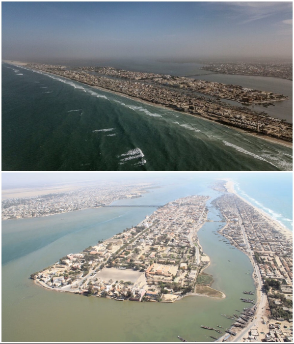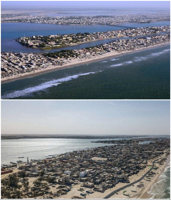 Сам город находится на клочке суши, именуемом полуостровом Langue de Barbarie. С одной стороны он омывается водами Атлантики, а с другой – рекой Сенегал, поэтому любое изменение климата чревато затоплениями. Так вот, чтобы по-быстрому решить проблему с наводнением, местные власти прорыли четырехметровой канал, который должен был отвести воды реки в океан. Но получили абсолютно обратный эффект. И если на несколько дней это спасло ситуацию, то буквально в считанные месяцы соленые воды океана размыли берега канала и полностью отрезали полуостров от материка.