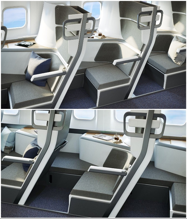 «Наша конструкция позволяет пассажирам использовать кресла на свое усмотрение: лечь горизонтально, сидеть как в обычном кресле, отдыхать с полностью вытянутыми ногами, принимать пищу, работать за ноутбуком и быть изолированным от других пассажиров», - говорит разработчик.