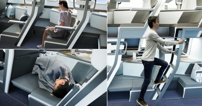 Кто летал в эконом-класса, тот знает, как болит спина и отекают ноги от длительного сидения в одной позе. О том, чтобы нормально выспаться, и мечтать не приходится. Но в скором времени такое положение дел может измениться. В американской компании Zephyr Aerospace задумались о том, как сделать перелеты на дальние расстояния более приятными для каждого путешественника, даже в эконом-классе. Специалисты разработали двухъярусные модули с изолированными сидениями, а это означает, что у каждого пассажира теперь будет свое спальное место, где даже можно полностью вытянуть ноги.