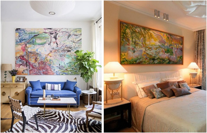 Картина в духе «Черного квадрата» Малевича, морской пейзаж, который является живым воплощением природы и источником вдохновения, винтажный постер, изображение Мэрилин Монро в стиле поп-арт – можно выбрать что угодно. Самое главное, чтобы полотно вас восхищало, вдохновляло и хорошо вписывалось в имеющийся интерьер. И не забывайте о размере – чем больше картина, тем лучше. После того, как вы повесите ее в выбранной комнате, то сразу увидите, насколько сильно изменилось помещение. Яркое крупное полотно разбавит приевшийся интерьер, станет замечательным акцентом и будет привлекать взгляды всех гостей. Кроме того, этот предмет декора станет отличной возможностью для самообразования: наблюдение за одной и той же картиной на протяжении многих недель и месяцев откроет новые горизонты, смыслы и покажет, как меняетесь вы сами, ваше мышление и взгляды на жизнь.