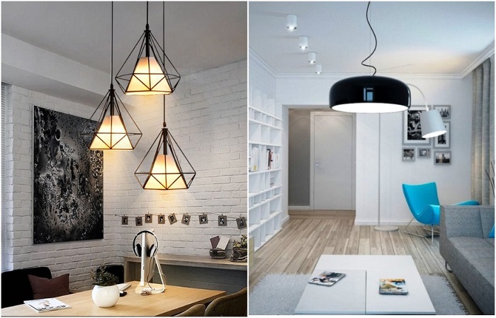 Освещение – один из главных пунктов при оформлении интерьера. Оно выполняет не только практичную функцию, но и декоративную, являясь полноправным «членом» интерьера. Именно поэтому старые массивные люстры, тускло горящие лампочки и прочие светильники, внешний вид которых оставляет желать лучшего, нужно заменить на модные современные варианты. Например, вместо стандартного осветительного прибора можно приобрести оригинальную композицию из свечей. В этом случае источник света станет полноценным арт-объектом. Подумайте, быть может в вашем интерьере гармонично будет смотреться люстра в виде клетки для птиц, интересные яркие бра, «лампочки Ильича», свисающие с потолка на крашеных проводах. Не бойтесь рисковать. Главное – учитывайте при выборе светильника стилистику комнаты, чтобы все элементы складывались в единую композицию.