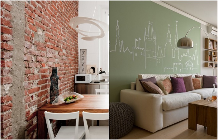 Если душа требует чего-то внушительно, масштабного и яркого, то на помощь придет отделка. Например, можно оформить в гостиной, на кухне или в спальне акцентную стену. Учитывайте тот факт, что от такого акцента впоследствии будет очень сложно избавиться, поэтому он должен быть четким, осознанным, комфортным по цвету, продуманным от А до Я. Важно, чтобы стена сочеталась со стилем как одной комнаты, так и целой квартиры, не выбиваясь из общей картины, а гармонично вписываясь в обстановку.