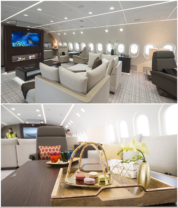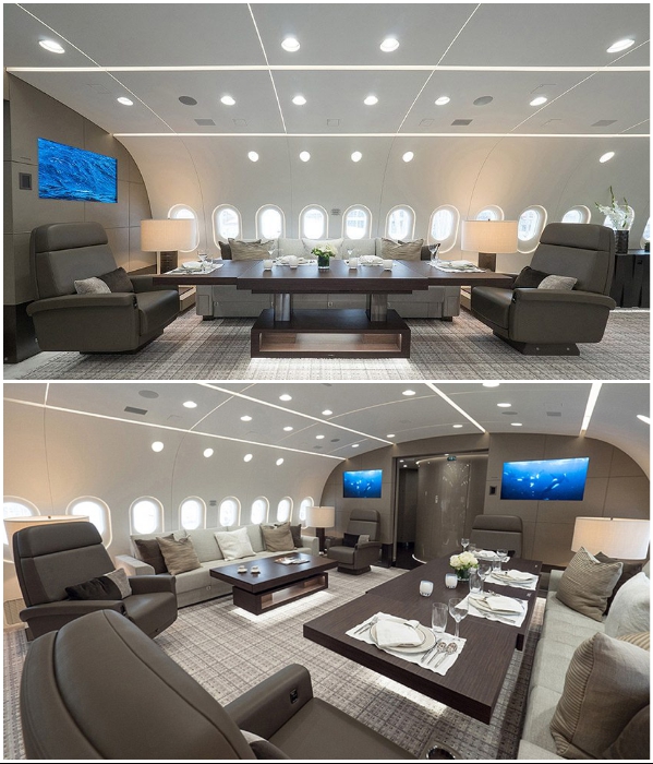 Общая лаунж-зона на борту роскошного самолета VVIP Boeing787 Dream Jet. | Фото: bigpicture.ru.