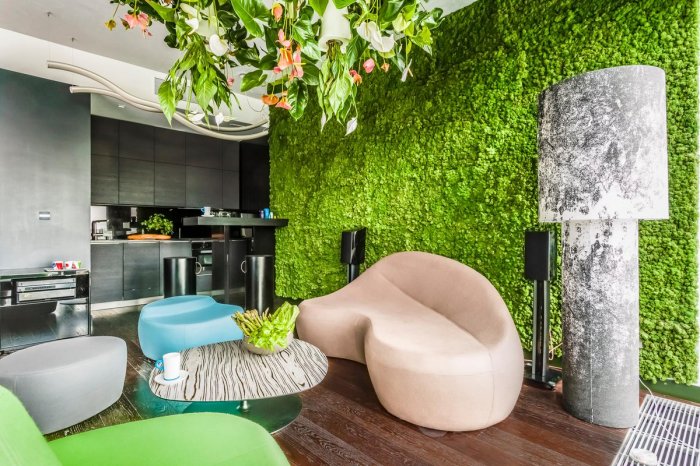 Зеленое дополнение подходит и для стен. /Фото: naturalgreenwalls.com