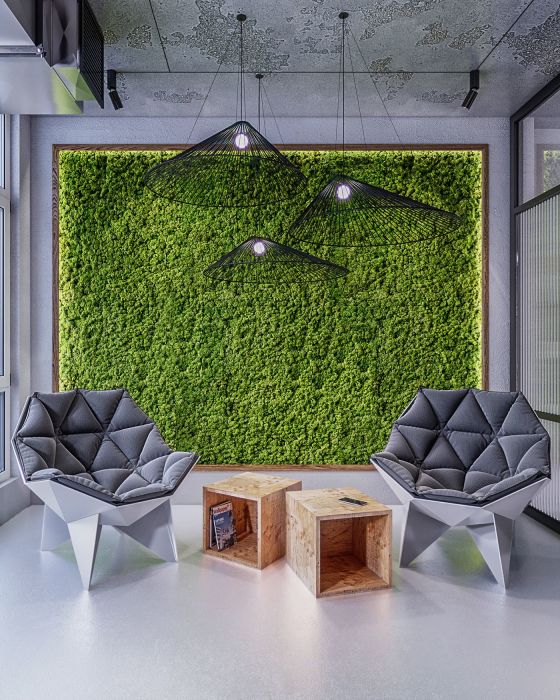 Еще один пример масштабного применения мха с обрамлением и подсветкой по краям. /Фото: i.pinimg.com