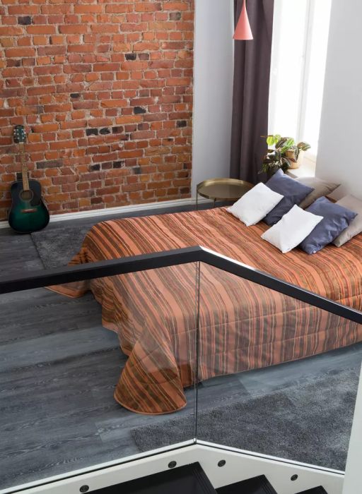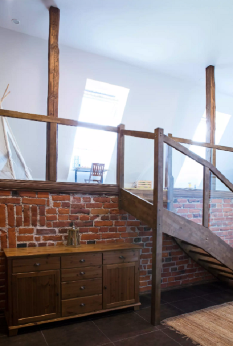 Помимо того, что перепланировкой особо не занимались, стараясь сохранить оригинальный стиль, так и отделку некоторых элементов и даже стен оставили прежними. Так, например, друзья не стали менять стальные перила и деревянные поручни на лестничном марше, созданные более 90 лет назад. Решили оставить и огромные оконные проемы, только лишь заменили сами окна на более современные и энергосберегающие. В некоторых зонах явно просматриваются участки стен, сделанные из красного кирпича тех времен. Именно они придают особую выразительность уже современному интерьеру большинства квартир и подчеркивают стиль исторического здания.