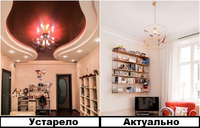 Мода меняется очень быстро, однако многие не следят за трендами, а потому мечтают иметь в своих интерьерах то, что лет 20 назад утратило свою актуальность. Novate.ru рассказывает, от каких дизайнерских приемов лучше отказаться, чтобы не превратить квартиру в страшный сон любого профессионального дизайнера. Слово «евроремонт» раньше было на пике популярности, а все его составляющие считались роскошными, дорогими и невероятно стильными. Однако любовь к вычурности и помпезности, которая еще в 2000-х годах была признаком прогрессивного взгляда на оформление жилого пространства, сегодня является неактуальной. В современном интерьере гораздо больше ценятся простота и лаконичность, продуманный и законченный интерьер, в котором каждый предмет имеет свою функциональную нагрузку. Натуральные материалы, качественная мебель, свет и простор – все это является признаками действительно стильной обстановки. А вот следующие дизайн-хаки давно вошли в категорию антитрендов. 1. Натяжные многоуровневые потолки с подсветкой Многоуровневые натяжные потолки утяжеляют пространство В некоторых квартирах можно увидеть блестящие натяжные потолки с огромным рисунком и множеством точечных светильников, расположенных по периметру. Лет пять-десять назад такой потолок вызывал восторг и буквально перехватывал дыхание, ведь выглядел очень богато и презентабельно. Однако сегодня дизайнеры придерживаются другого мнения: подобная конструкция очень давит и утяжеляет пространство, особенно если в квартире низкие потолки (хрущевки – лишнее тому доказательство). Натяжные многоуровневые конструкции можно использовать лишь в том случае, если вы преследуете техническую цель. Мы говорим о разводке вентиляции и иных коммуникаций, организации конструкции для встраивания и так далее. Если же подобной необходимости нет, отдайте предпочтение простым, лаконичным потолкам без всевозможных излишеств. Для примера можете взглянуть на скандинавские интерьеры – там потолки аккуратные, без сложного декора, с ярким освещением, но без помпезных люстр. В большинстве случае используются гладкие матовые поверхности, которые отличаются правильными геометрическими формами. Идеально ровные потолки делаются однотонными, а в качестве оформления могут использоваться разве что деревянные панели или балки. 2. Ниши и арки Гипсокартонные конструкции занимают много места Гипсокартонные перегородки с нишами, оснащенные внутренне подсветкой, фигурные фальшстенки, художественные арки, выстроенные в узких коридорах – все это устарело. Подобные конструкции пришли к нам из 2000-х и, к сожалению, не торопятся покидать современные квартиры. Их главный минус заключается в том, что они занимают много места и «съедают» все пространство, особенно если речь идет о малогабаритных квартирах. Кроме того, в 2020 году в моде просторные светлые комнаты, а архитектурные излишества в виде ниш, арок только загромождают пространство. Современные дизайнеры предпочитают использовать для зонирования «ажурные конструкции», к которым относятся вертикальные деревянные балки, тонкие металлические панели, выполненные при помощи художественной резки. Также в моде до сих пор ширмы и стеклянные перегородки, которые добавляют пространству легкости. 3. Бежевый цвет Вместо бежевого можно использовать модны