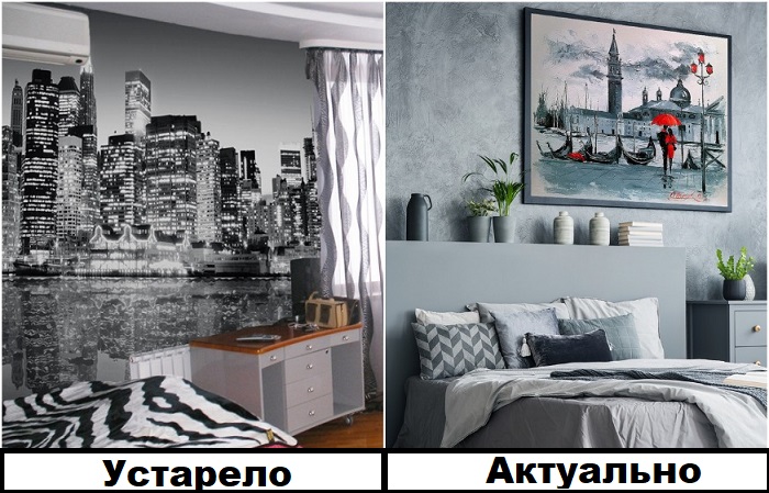 На протяжении последних пяти-семи лет было очень популярно использовать фотообои с изображением мировых столиц. Логичность и уместность подобного дизайнерского решения долго не оспаривалась, так как черно-белые снимки всегда выглядят стильно и элегантно, а небоскребы Манхэттена покоряют своей красотой. Кроме того, подобные обои делают пространство визуально больше, становятся акцентом в комнате и прекрасно сочетаются с упомянутыми выше яркими оттенками.