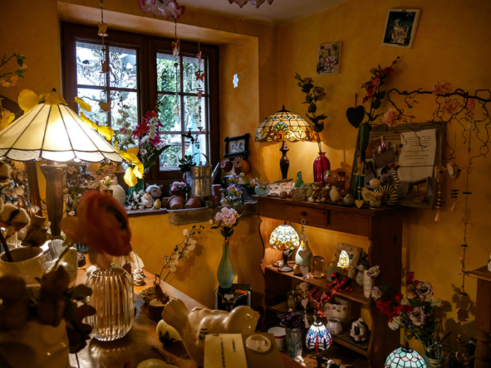 Винтажные предметы быта и цветочные композиции украшают интерьер магазинчика Бруно в деревне Ружмон-ле-Шато («L’arroisoir», Франция). | Фото: belfort-tourisme.com.