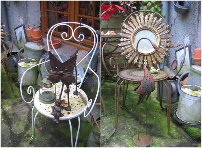 Раритетные предметы садовой мебели и сами лейки украшают внутренний дворик флориста («L’arroisoir», Ружмон-ле-Шато). | Фото: mesvisites.canalblog.com.