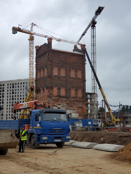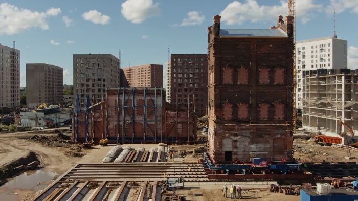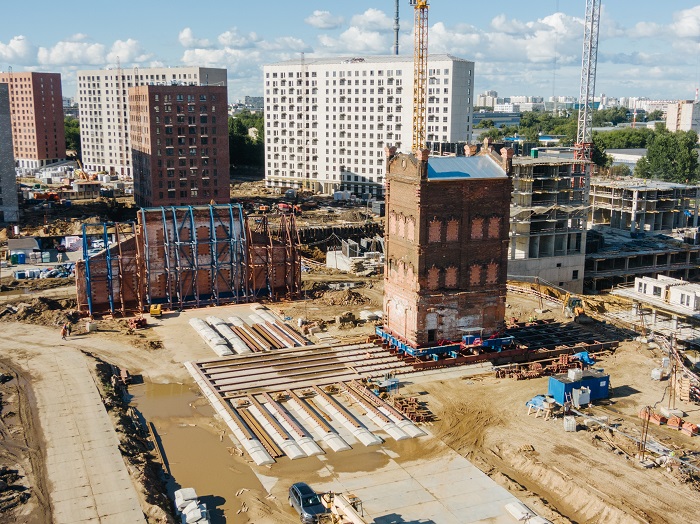 Почти сто лет назад началась масштабная реконструкция Москвы. Расширялись улицы, вырисовывался новый облик города. Одним из занимательных приемов реконструкции стало перемещение целых домов с одного места на другое. Последнее перенесение постройки таким способом состоялось 1979 году. И вот спустя 40 лет специалисты компании «ПИК» блестяще сумели передвинуть на 100 метров старинную водонапорную башню. Жилой комплекс «Шереметьевский» девелоперской компании ПИК. На сегодняшний день в Москве происходит активная реорганизация бывших промышленных зон. На их месте появляются жилые микрорайоны с развитой инфраструктурой. Так, на территории бывшего компрессорного завода «Борец» в 10 минутах ходьбы от станции метро «Савёловская» находится строительная площадка жилого комплекса «Шереметьевский» девелоперской компании ПИК. В скором времени там появятся 15 жилых домов с подземными паркингами, поликлиника, школа и 3 детских сада. Водонапорная башня XIX века. В бывшей промзоне осталось несколько исторических зданий, среди которых водонапорная башня 1899 года. Специалисты «ПИК» имели полное право снести постройку, т. к. исторической ценности она не представляла, однако было решено сделать по-другому. Учитывая тот факт, что «Шереметьевский» выполнен из монолитного кирпича, разработчики выказали желание не сносить и даже отреставрировать водонапорную башню, т.к. она прекрасно впишется в будущий ансамбль. Единственное, что не устраивало, так это месторасположение постройки. Поэтому решено было ее просто… передвинуть! Водонапорная башня XIX века. Башню предварительно укрепили металлическими поясами и скобами. Стоит отметить, что в советское время в столице практиковалось перемещение зданий с одного места на другое. В 1930-е годы, согласно генеральному плану реконструкции г. Москвы, было передвинуто немало построек. Последний же подобный случай имел место быть в 1979 году. После этого целых 40 лет никто не практиковал подобного: одним не хватало денег, другим – умений, а третьим было абсолютно наплевать на культурные ценности. Именно поэтому желание компании «ПИК» сохранить и передвинуть водонапорную башню вызвало небывалый интерес. Старую водонапорную башню передвинули на 100 метров. Перемещение башни заняло 3 суток. Перемещение башни происходило в июле 2020 года. Специалисты отделили постройку от фундамента, установили под нее железобетонную трубу и не спеша начали сдвигать к южной части стройплощадки на 100 метров. Чтобы здание не пошло трещинами, предварительно укрепили его металлическими поясами. Процедура перемещения заняла 3 дня. Башню перемещали на специальной платформе. Модельную мастерскую и сборочный корпус ждет перемещение и последующая реставрация. Помимо водонапорной башни, было решено сохранить еще модельную мастерскую и сборочный корпус. Постройки разделят на части, переместят, а затем вернут им целостность. За процесс возвращения былого вида зданиям будут ответственны высококвалифицированные архитекторы и реставраторы. В Москве на 100 метров была передвинута водонапорная башня XIX. Старинные постройки XIX века не разрушат, а передвинут в сторону. Ожидается, что в будущем в этих постройках частично будут располагаться офисные помещения, а также культурная и музейная зоны. Передвижка мастерской и корпуса осуществится до ноя