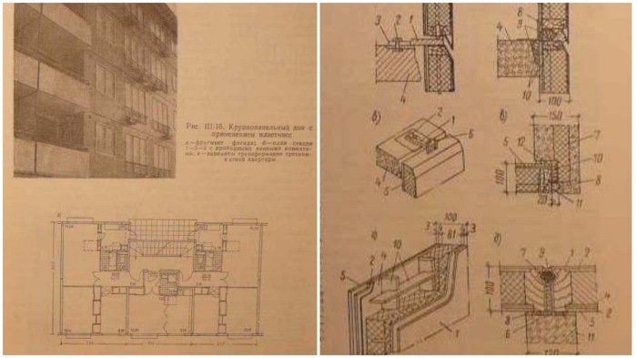 В качестве утеплителя, закладываемого изнутри, выступал пенопласт толщиной до восьми-девяти миллиметров. За ним был пароизоляционный слой из алюминиевой фольги и верхний слой из гипсоволокна (стандартная гипсовая штукатурка). Вес панели был достаточно небольшой – 270 килограммов. Естественно, по сравнению с бетонной плитой это совсем небольшая масса. А что самое интересное, теплозащитные характеристики были почти в два раза выше нормы того времени.