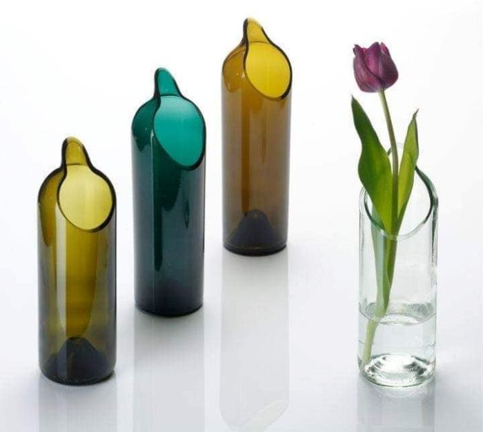 Стеклянные бутылки — отличный материал для изготовления необычной вазы. /Фото: refashionnation.files.wordpress.com
