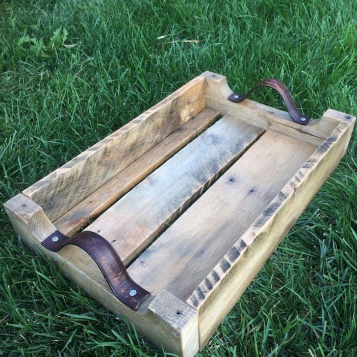 Из обычного деревянного ящика получается отличный вместительный поднос. /Фото: i.pinimg.com