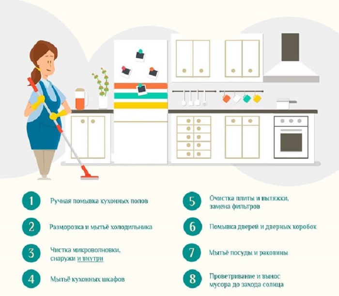 Составьте план уборки, чтобы на кухне всегда был порядок. / Фото: home-gid.com