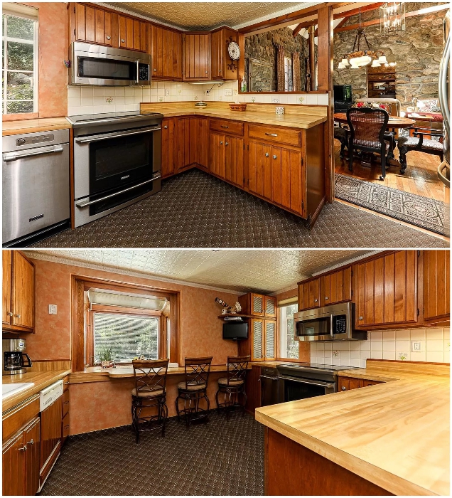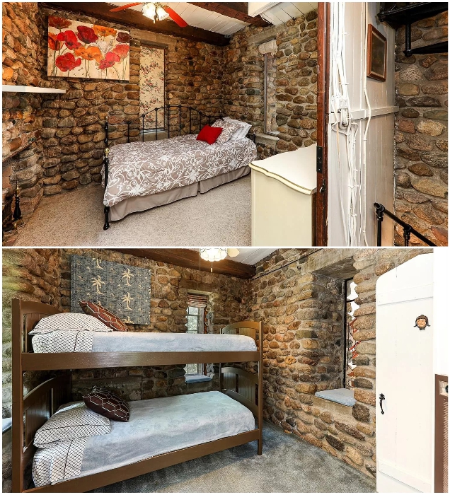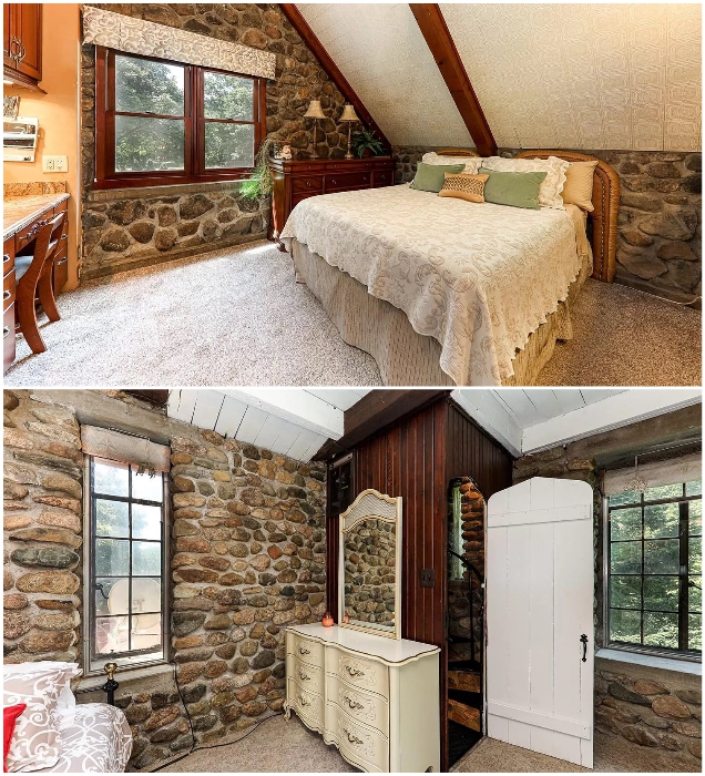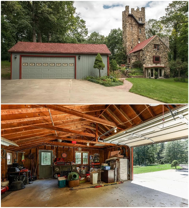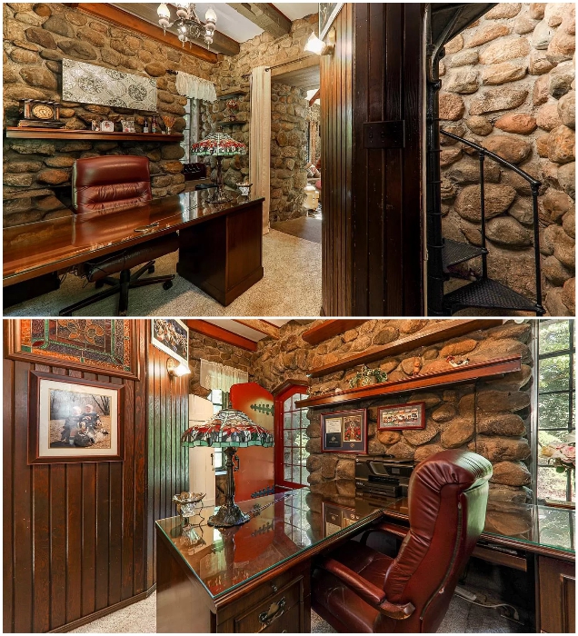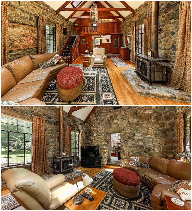 Чего стоят лишь 18-метровая башня со спиральной лестницей, проходящей по всем ее пяти уровням-этажам, а также несколько старинных каминов, металлическая кровля в стиле Шейк, деревянные полы и массивные дубовые балки на перекрытиях.