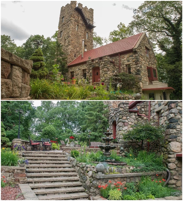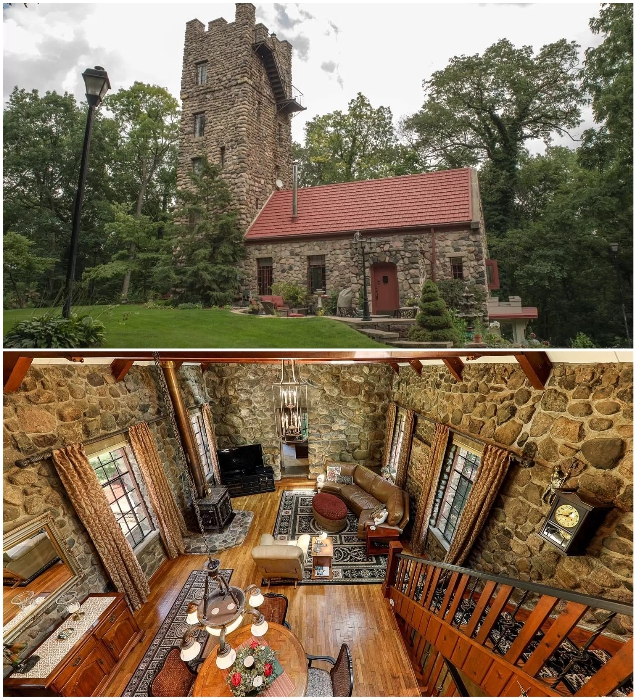 Доподлинно известно, что на «средневековую» башню и дом рядом с ней ушло 500 тонн природного камня и 300 бочек цемента. В итоге получился мини-замок площадью всего лишь 186 кв. м с минималистским интерьером, ведь в те века, которыми увлекался владелец, вся роскошь состояла в добротности стен и натуральности мебели. Но тем не менее дом действительно впечатляет.