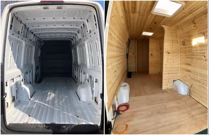Мебельщик из графства Сомерсета Дэрил Ллойд Витт (Daryl Lloyd Witt, Великобритания), оказавшись не у дел в связи с самоизоляцией и тотальным карантином, решил воплотить в жизнь свою мечту – собственноручно сделать домик на колесах. Он сразу же приобрел автомобиль марки Mercedes Sprinter и принялся за работу, ведь необходимый материал и инструмент был у него в наличии. Поскольку Дэрил все-таки высококлассный мастер и знает, как распланировать пространство, умеет пользоваться различным инструментом необходимым для работы с деревом и металлом, ему не составило большого труда самостоятельно справляться с процессом преобразования.