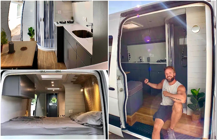Нагрянувшая самоизоляция заставила многих людей заняться делами, которые никак не получалось сделать из-за постоянной занятости на работе. Так, например, британский мастер-мебельщик решил попробовать свои силы в преобразовании грузового микроавтобуса Mercedes Sprinter и создал дом мечты на колесах. На всю трансформацию он потратил 3 месяца упорного труда, но ни капельки не жалеет, ведь теперь подумывает о том, чтобы поменять профессию и заняться подобным бизнесом. Тем более, что его дом на колесах уже приобрели в качестве приза в розыгрыше лотереи. Мебельщик Дэрил Ллойд Витт из Фрома потратил три месяца, чтобы превратить Mercedes Sprinter в дом своей мечты. | Фото: thesun.co.uk Мебельщик из графства Сомерсета Дэрил Ллойд Витт (Daryl Lloyd Witt, Великобритания), оказавшись не у дел в связи с самоизоляцией и тотальным карантином, решил воплотить в жизнь свою мечту – собственноручно сделать домик на колесах. Он сразу же приобрел автомобиль марки Mercedes Sprinter и принялся за работу, ведь необходимый материал и инструмент был у него в наличии. Поскольку Дэрил все-таки высококлассный мастер и знает, как распланировать пространство, умеет пользоваться различным инструментом необходимым для работы с деревом и металлом, ему не составило большого труда самостоятельно справляться с процессом преобразования. Утепление и внутренняя отделка сделана из натуральных, экологически чистых материалов. | Фото: thescottishsun.co.uk. Для того чтобы в домике на колесах можно было жить в любую погоду и даже в зимнюю пору, молодому человеку потребовалось основательно утеплить стены. Для этого он использовал натуральные материалы, которые после закрепления обшил деревом. Если в зоне сна (у изголовья) он оставил доски в натуральном цвете, чтобы создать атмосферу тепла и уюта, то во всех остальных «комнатах» – покрасил их в белый цвет, который визуально увеличил объем ограниченного пространства. Двуспальная кровать и вместительная тумба под ней расположены в задней части фургона. | Фото: bestlifestylebuzz.com. Для того чтобы более рационально использовать крошечное пространство, молодой человек решил установить двуспальную кровать на высоком подиуме. Такая хитрость позволила организовать и просторное спальное место, и вместительную систему хранения под ней. Кухня-столовая получилась вполне комфортная, в ней есть все необходимое для приготовления и принятия пищи. | Фото: bestlifestylebuzz.com. Мини-кухня оформлена стандартно, в ней есть все необходимое для самостоятельного приготовления пищи и хранения всего необходимого: газовая печь, кухонный уголок с рабочей поверхностью, мойка, мини-холодильник, подвесные шкафы и напольные тумбы для хранения продуктов и посуды. Напротив кухонного уголка есть небольшой откидной стол, за которым легко поместится два человека. Душевая кабина с туалетом тоже могут поместиться в фургоне автомобиля Mercedes Sprinter. | Фото: bigpicture.ru/ bestlifestylebuzz.com. В это сложно поверить, но в фургоне вместе с обустроенными жилыми зонами поместилась еще и полноценная душевая кабина, в которой есть горячая вода, благодаря встроенному в кухонной зоне бойлеру. Внутри душевой кабины установлен и биотуалет. Дэрил остался доволен преобразованиями и решил заняться новым делом. | Фото: bestlifestylebuzz.com. На все преобразование Дэрил Ллойд Витт потратил целых три месяца. За это время он с обычного грузового фургона соз