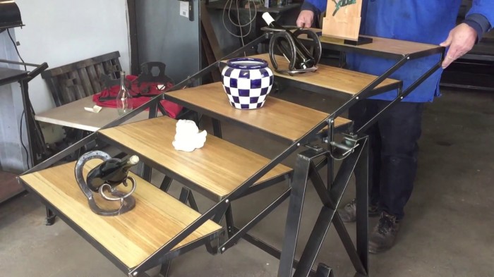Правильное планирование и расчеты способны обеспечить действительно впечатляющий результат. Из обеденного стола достаточно внушительных размеров с помощью поворотного механизма и фиксатора получаются достаточно удобные открытые полочки. Такой необычный стеллаж можно установить в столовой или гостиной, где столом пользуются только при необходимости, когда приходят гости. В остальное время из стола можно делать декоративный стеллаж с полочками для декора.