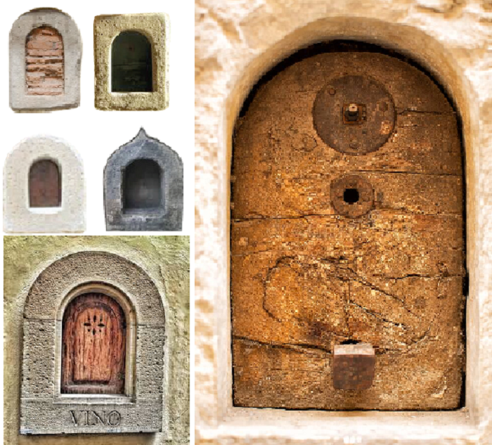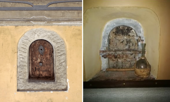 Немного истории: Изначально «buchette del vino» появились в Тоскане и были сделаны для того, чтобы продавать остатки вина рабочим, возвращающимся со смены домой. Эти небольшие проемы в виде крошечного окна, закрывающиеся изнутри, располагались на воротах или фасаде здания, который выходил на тротуар. «Люди могли постучать в маленькие деревянные ставни и наполнить свои бутылки прямо от семей Антинори, Фрескобальди и Рикасоли, которые до сих пор производят некоторые из самых известных марок итальянских вин», – рассказывает Президент Ассоциации винных окошек Маттео Фалья. Со временем подобные окошки распространились по ближайшим регионам Италии, а во время бубонной чумы 1630 г. стали спасительной соломинкой, позволяющей сохранить свой бизнес для владельцев виноделен и не только. Учитывая расположение и габариты отверстия в стене/воротах, полностью исключался контакт с покупателем, который даже монетки при расчете не отдавал в руки, а мог положить в специальную тарелочку, наполненную уксусом.