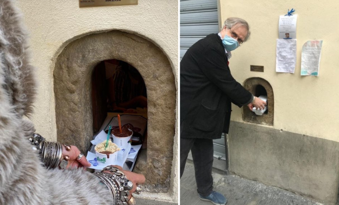 В Италии возобновили давнюю традицию подачи напитков через «buchette del vino». | Фото: interestingengineering.com. Давно позабытые «buchette del vino» («винные окошки») снова можно увидеть открытыми во Флоренции. В связи с пандемией COVID–19 предприимчивые рестораторы и владельцы баров, кафе и магазинов вспомнили о средневековых архитектурных ухищрениях своих предшественников, которые всеми силами пытались сохранить свой бизнес. Современные реалии мало чем отличаются от давних трагических событий, поэтому они и вдохновились подобными решениями, поддерживая дух старинного города в такой необычный способ.