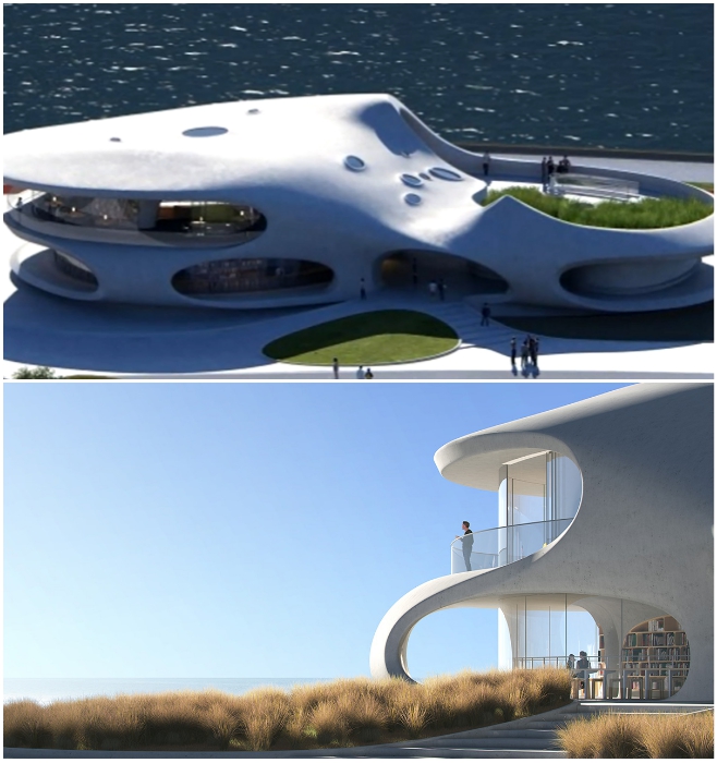 Помимо читального зала, в котором в свободном доступе будет размещено более 10 тыс. книг и другой печатной продукции, в многофункциональном культурном центре «Wormhole Library» оформят кафе и террасу с видом на побережье.