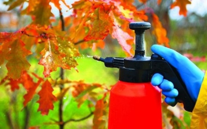 До того, как листва опадет с деревьев и кустов, а зимующие насекомые спрячутся в почву, в сентябре сад нужно обработать инсектицидами. Не стоит откладывать обработку на октябрь, так как основные вредители уже уйдут глубоко в землю.