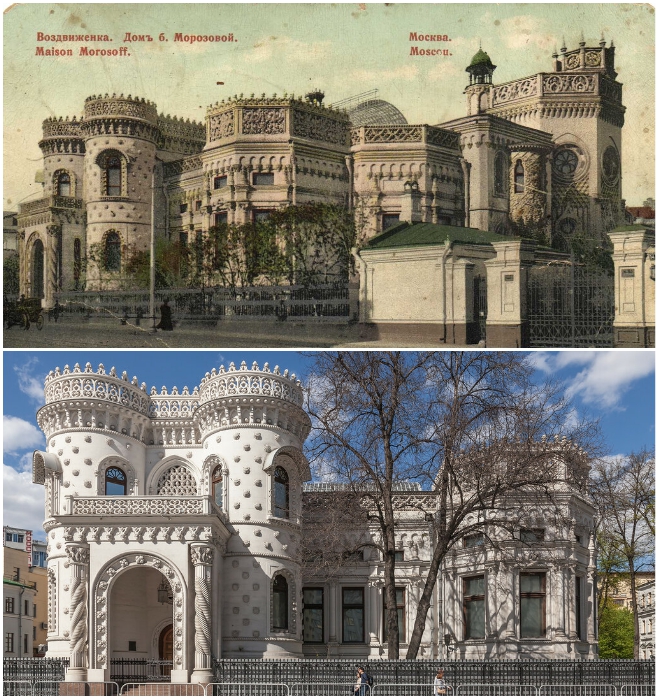 Эксцентричный особняк Арсения Морозова на улице Воздвиженка №16 (Москва). | Фото: sterh1973.livejournal.com/ tehno-vostok.ru. Единственный в Москве дом, в облике которого сочетаются элементы эклектики, модерна и яркой экзотической стилизации мавританского стиля был создан в 1895—1899 гг. архитектором Виктором Мазыриным. Столь неожиданный объект, ставший в свое время знаменитым на всю столицу из-за «затейливого и глупого вида», был создан по заказу представителя могущественной торговой династии – Арсения Морозова. Эксцентричный отпрыск Варвары Морозовой был не только мотом, но и увлекающимся человеком, который после поездки в Испанию и путешествию по Португалии настолько загорелся идеей создания собственного дома похожего на дворец Пена в Синтре (Португалия), что по приезду домой сразу же принялся за строительство.