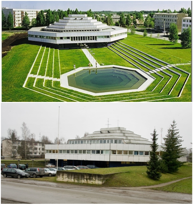 Дом-НЛО, Пентагон, корабль пришельцев – так называют жители небольшого городка в Эстонии административное сооружение, созданное в 1977 г. по проекту архитектора Тоомаса Рейна. Это здание стало настоящей иконой архитектурного стиля советских времен, которое на данный момент охраняется государством как памятник старинной архитектуры старины.