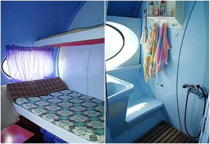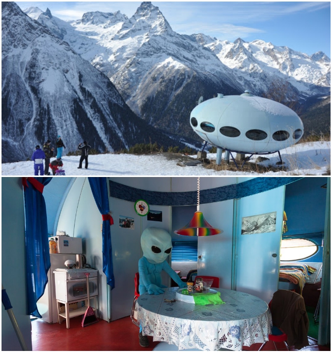 Незатейливый, но довольно комфортный «инопланетный» интерьер мини-гостиницы «Тарелка» (Карачаево-Черкесская Республика). | Фото: dombayinfo.ru.